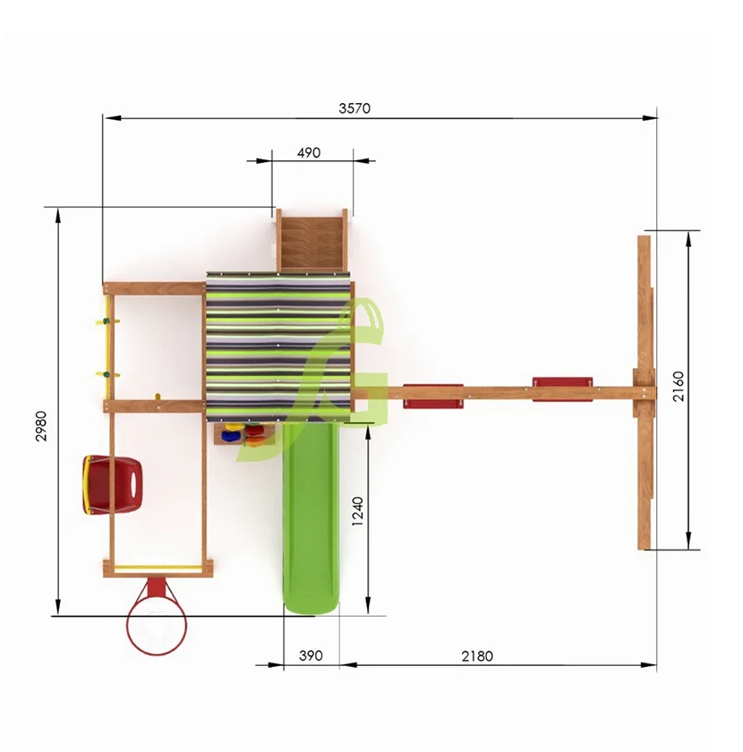 Обработка Острые края деревянных элементов закруглены, что помогает детям избежать травм во время активных игр