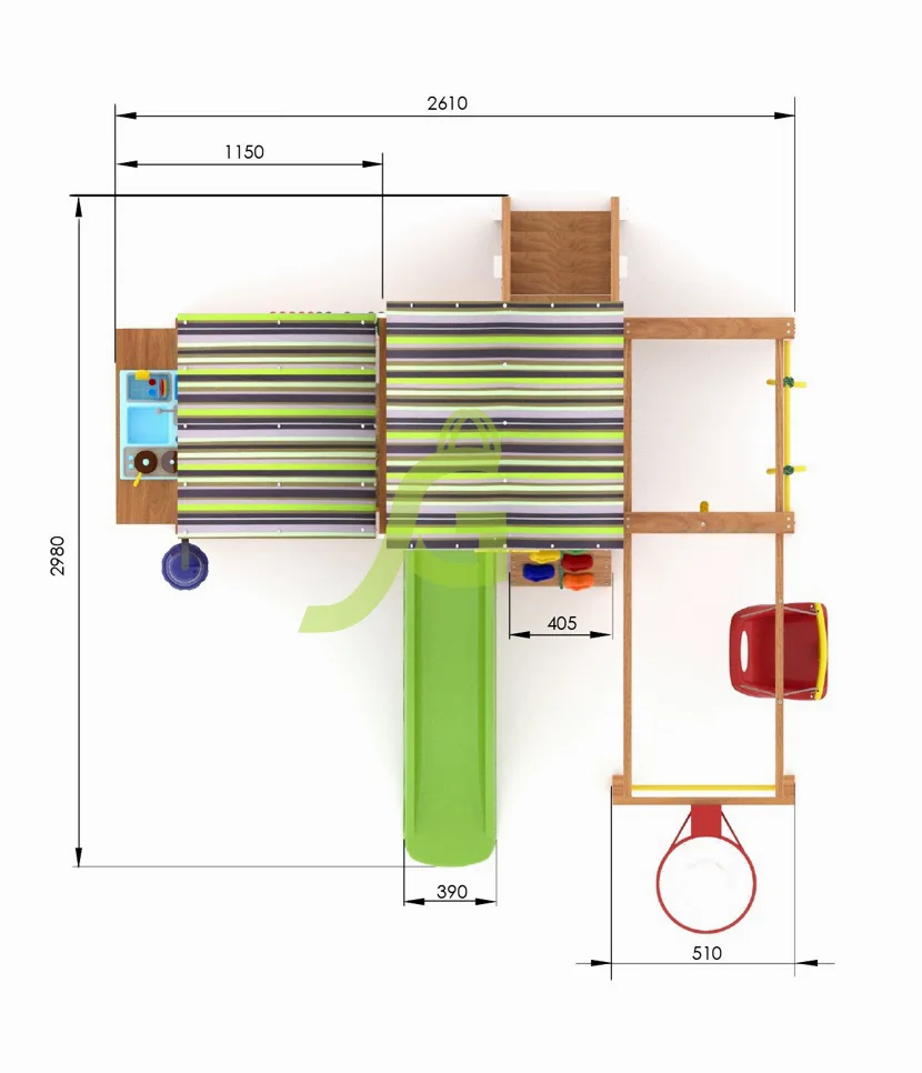 - Дополнительный спортивный модуль: Веревочная сетка, шведская стенка, турник - разнообразие физических активностей для малышей.