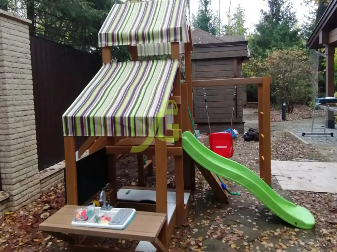 - Уютный домик с навесом: Защитит от солнца и дождя, создавая уютное пространство для игр и отдыха.