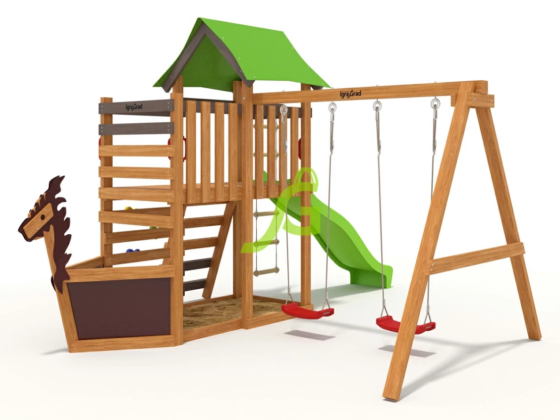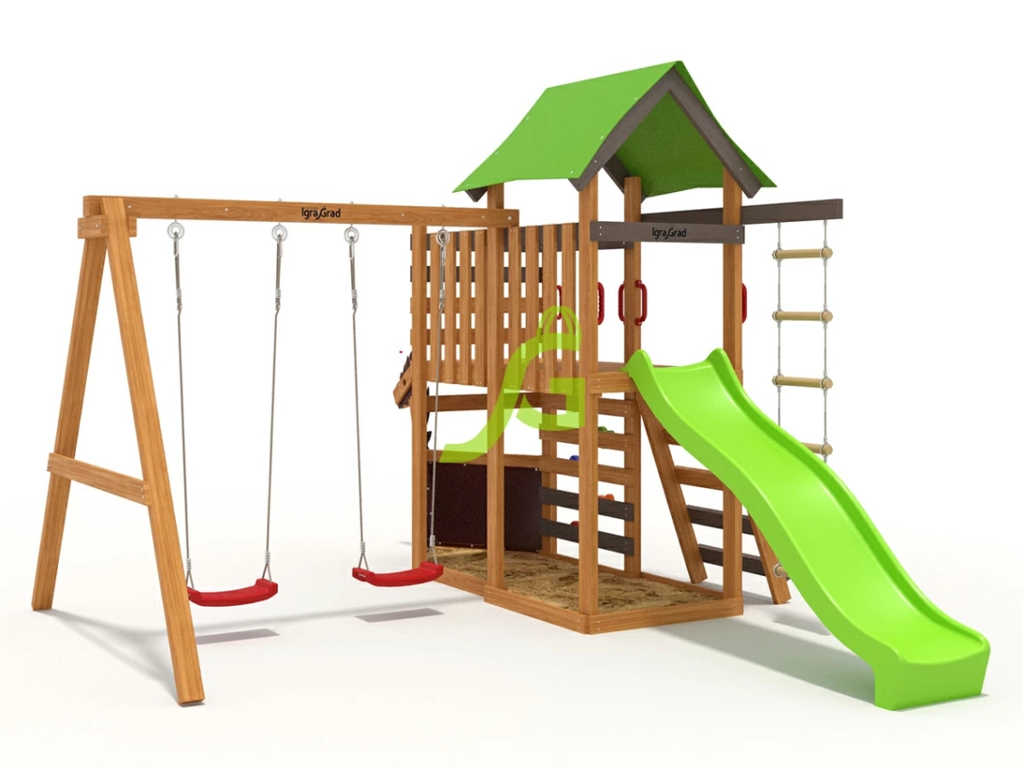 IgraGrad W3s предоставляет маленьким пользователям неограниченные возможности проявить воображение и фантазию в игре. Основа игрового сооружения — брус камерной сушки размером 45х90 мм. Игровой комплекс из дерева позволяет поддерживать физическую форму и совершенствовать двигательные навыки за счет грамотно разработанной конструкции.