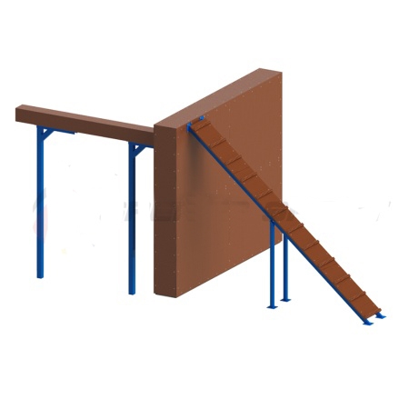 Элемент полосы препятствий «Забор с наклонной доской» устанавливается между препятствиями «Лабиринт» и «Разрушенный мост». Предназначено для занятий на улице для общефизической подготовки, выполнения упражнений на развитие ловкости, силы и координации.