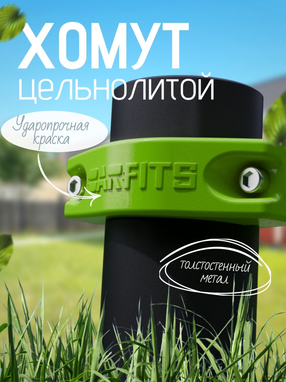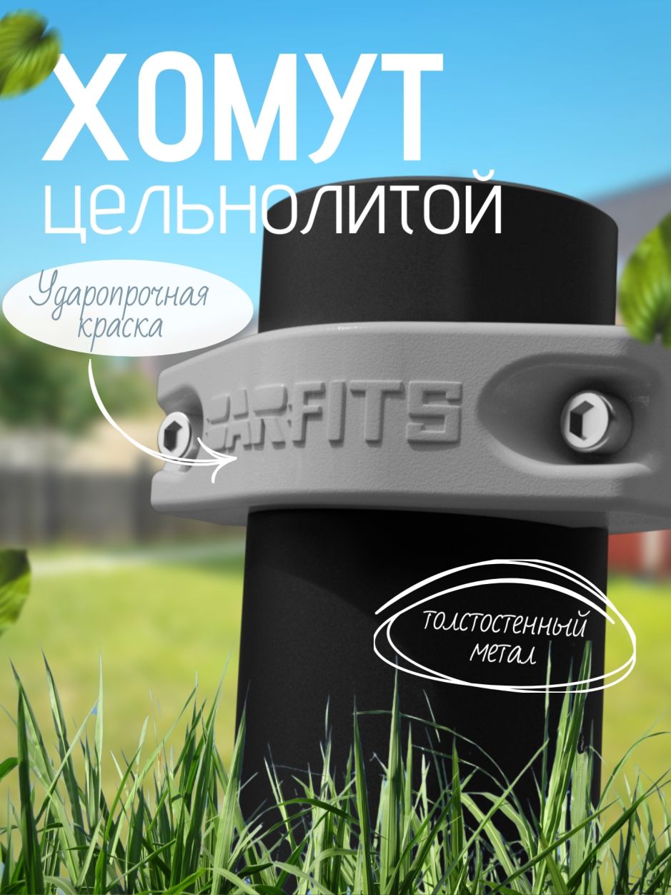 Хомуты (воркаут),предназначенные для сборки спортивных площадок, используемых для регулярных тренировок. Хомут предназначен для того, чтобы закреплять горизонтальную перекладину на вертикально стоящий опорный столб. Хомутовое соединение является более надежной альтернативой сварному соединению, которое может оторваться при чрезмерной нагрузке, наши хомуты этим свойством не обладают. Еще одним плюсом хомутов является их практичность. Положение турников на хомутах можно -