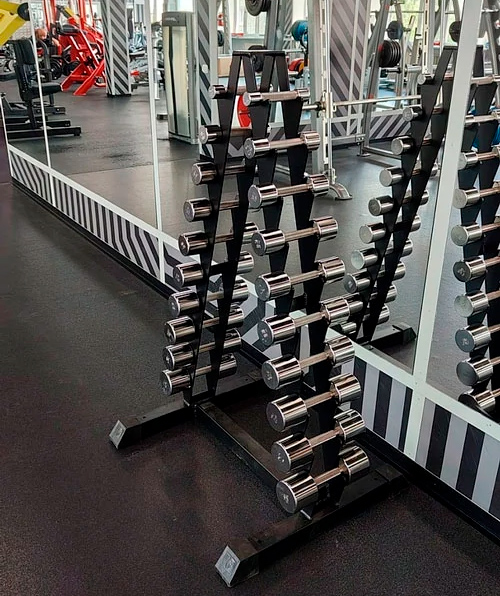 - В ряд входят гантели каждого веса по паре: 1; 2; 3; 4; 5; 6; 7; 8; 9; 10кг.