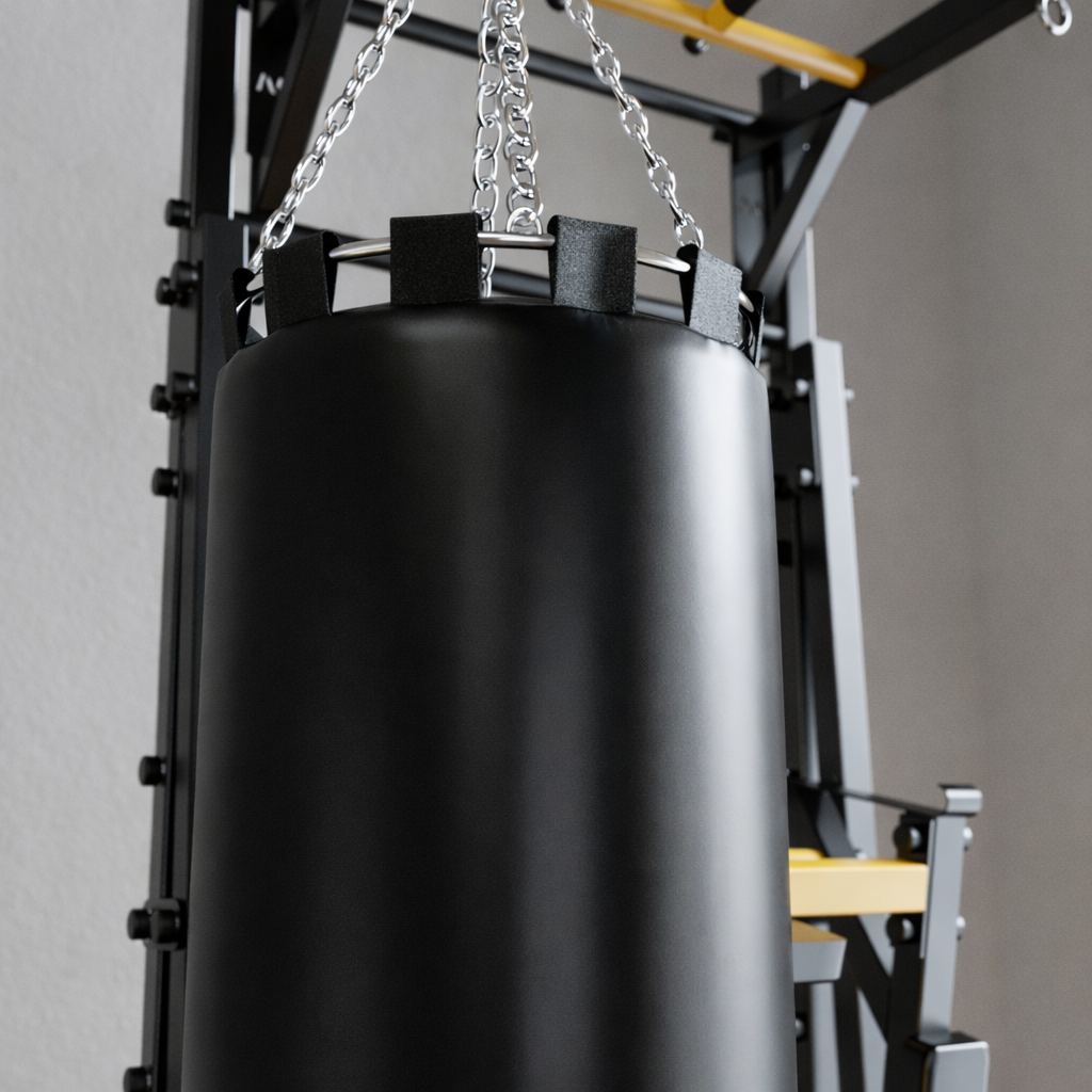 Наше решение с большим раскосом спереди обеспечивает монолитность конструкции и сводит к минимуму возможные колебания при занятиях. Преимущества данной стенки в том, что ее можно передвинуть или переместить. Отличное решение для офисов или квартир где нет возможности поставить стенку с креплением к стене. Подобный тренажер можно выставить надежно на любой поверхности, так как трубы основания имеют регулировочные зазоры, чтобы выставить опорные точки по месту сборки.