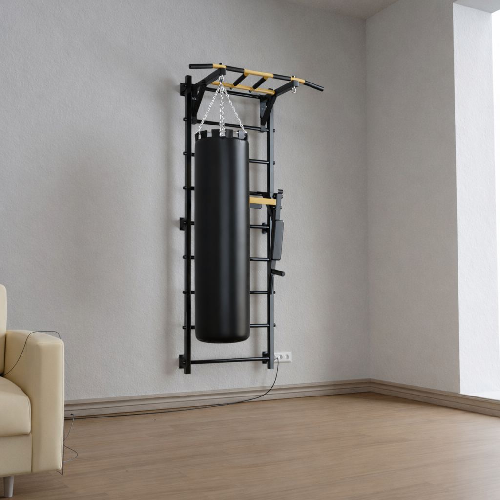 - Надежная стальная конструкция с профилем 40х40 , которая выдерживает до 250 кг. Вылет от стены 47 см - это идеальный вылет, так как в некоторых упражнениях требуется смещать корпус тела вперед, и при таком вылете Вы не будете касаться ногами шведской стенки.