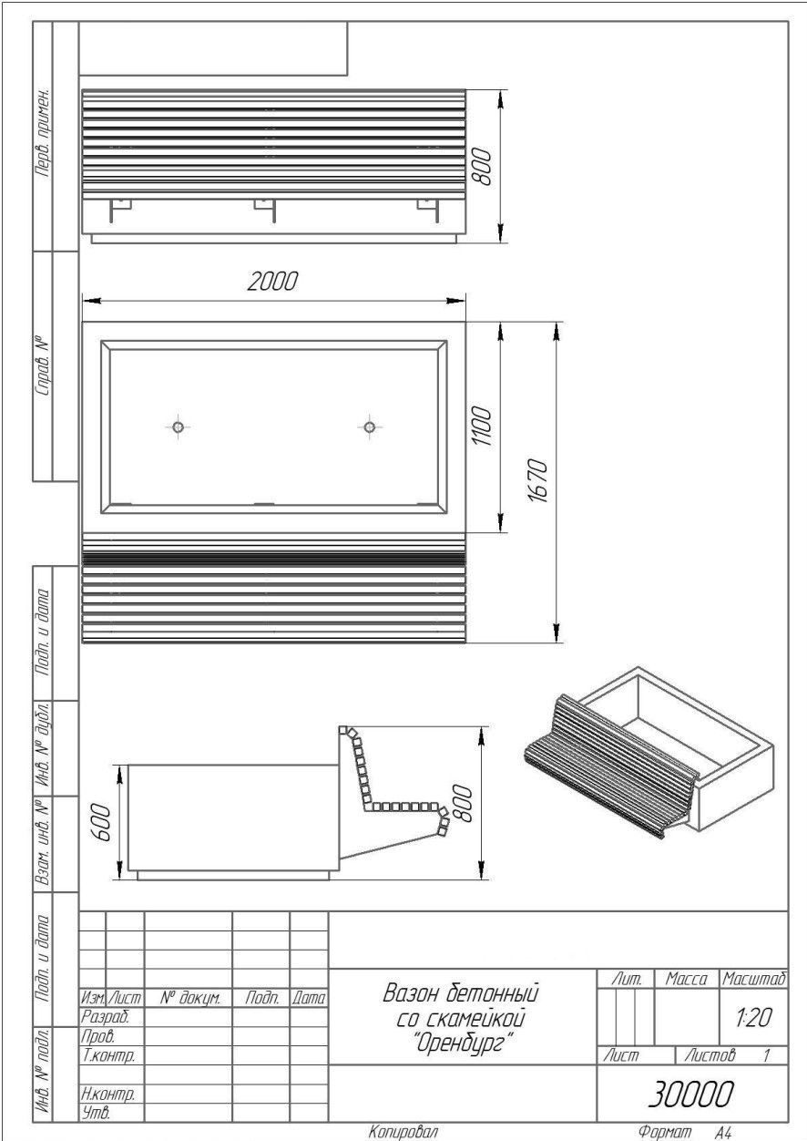 Высота 800 ммРазмеры вазона 2000х1100х600 мм