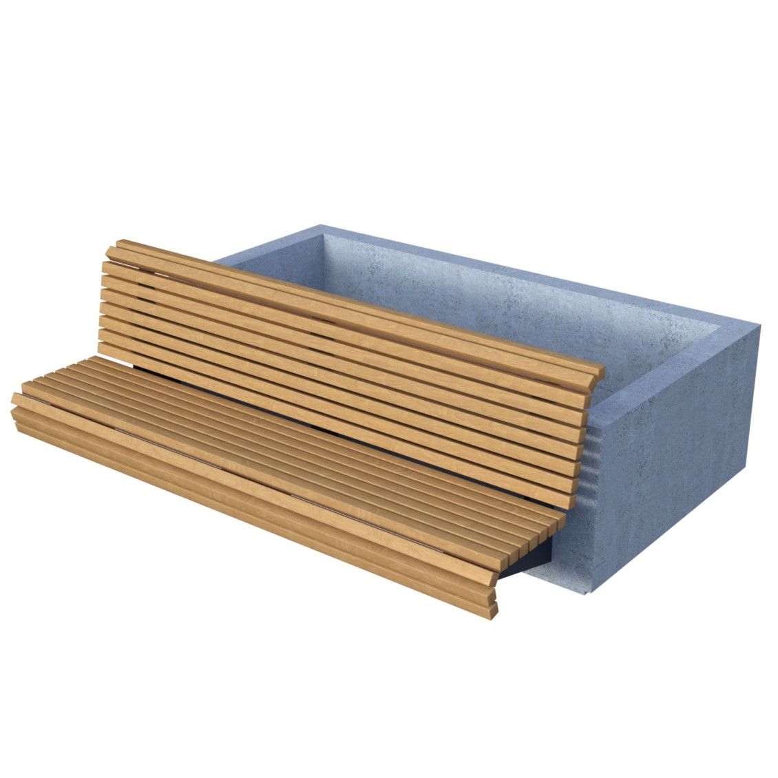 Основа: армированный архитектурный бетон, цвет по умолчанию серый.Каркас: с полимерно-порошковой покраской, возможен выбор цвета из каталога палитры (выбор цвета по каталогу RAL Classic +10% от стоимости изделия).